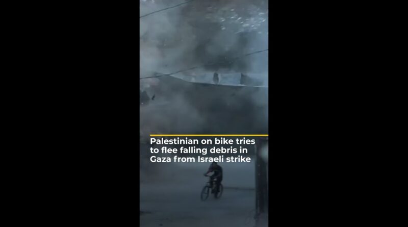 AfricaAsia 29 June 2025, 4:24 pm Team Buyback Palestinian on bike tries to flee falling debris in Gaza from Israeli strike | AJ #shorts Read more